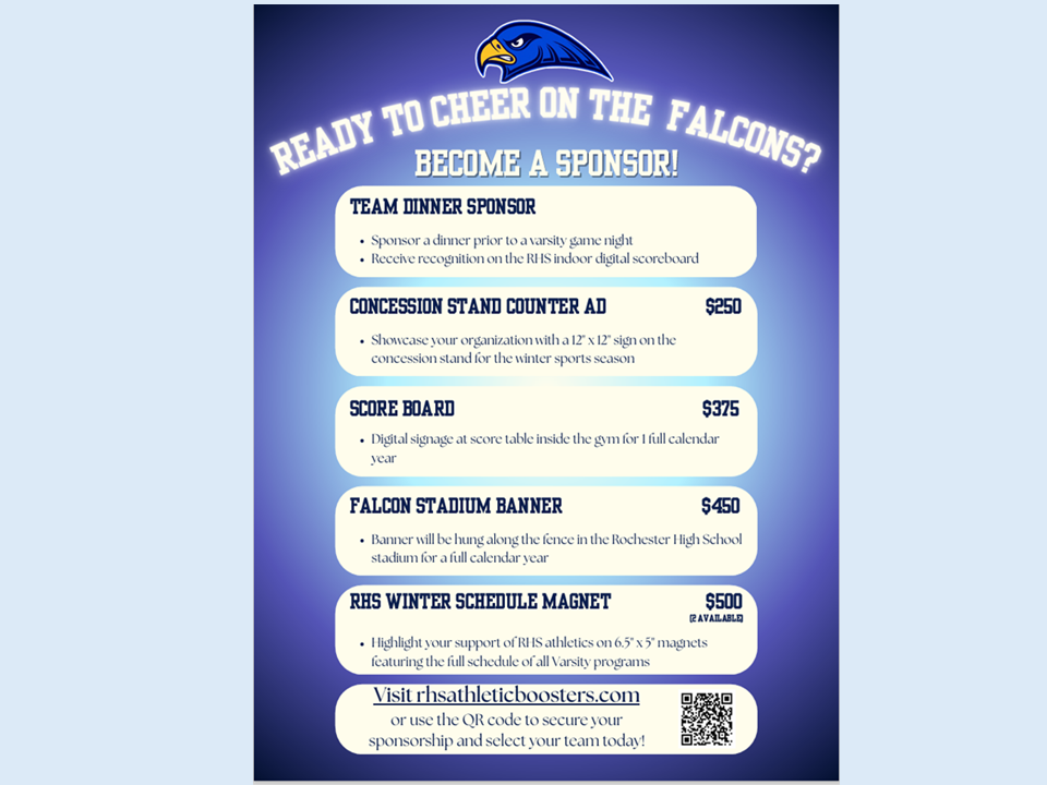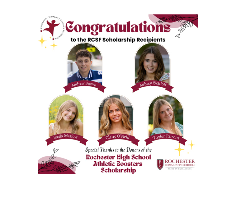 Support Rochester High School Athletic Boosters' mission to raise funds and provide financial support to all Rochester High School athletic programs and clubs, as well as to provide scholarships to athletes to further their Education!